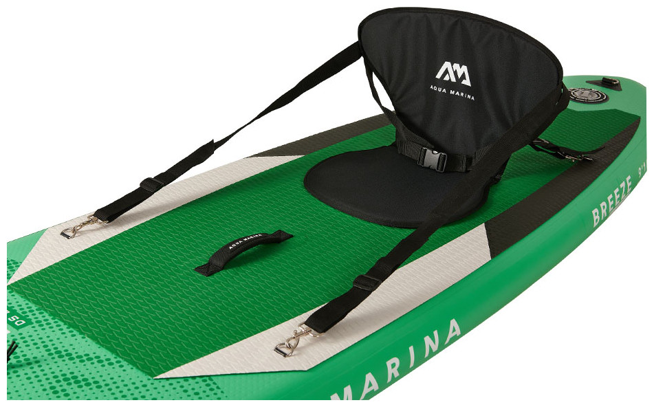 Η φουσκωτή SUP board BREEZE της AQUAMARINA έχει σχεδιαστεί για να προσφέρει σε μικρούς και μεγάλους ατέλειωτες ώρες παιχνιδιού και άθλησης μέσα στη θάλασσα! Κατασκευασμένη από εξαιρετικά ανθεκτικό υλικό με ειδική αντιολισθητική επιφάνεια, φουσκώνει με πίεση αέρα 15psi, αποκτώντας μεγάλη ακαμψία, και προσφέρει εξαιρετική σταθερότητα με το πλάτος και τα 3 πτερύγια σταθεροποίησης. Με διαστάσεις 300x76x12 εκ. και βάρος 7,9 κιλά, προσφέρεται για άτομα έως 100 κιλά που θέλουν να γυμνάσουν ολόκληρο το σώμα τους, κάνοντας stand up paddle, το καταπληκτικό αυτό νέο, μοντέρνο, και πλέον αναγνωρισμένο άθλημα που - σε αντίθεση με τα περισσότερα θαλάσσια σπορ -, δεν προϋποθέτει ειδικές δεξιότητες ή σωματότυπο, ή και kayak, στο οποίο και μετατρέπεται με το κάθισμα που δέχεται!