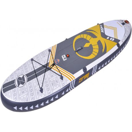 Μια φουσκωτή σανίδα SUP της εταιρείας Zray, με κατασκευή από υλικό υψηλής ποιότητας και άριστο design, ιδανική για συχνή χρήση σε ήρεμη ή κυματιστή θάλασσα. Η Zray D1 με μήκος 305 cm (10'), πλάτος 81cm (32'') και πάχος 15cm (6"), και αντοχή φορτίου μέχρι 130 kg. Έχει σχεδιαστεί για τον πιο έμπειρο κωπηλάτη για μεγαλύτερη ταχύτητα και δυναμική, καθώς το κομψό της σχήμα της δίνει την δυνατότητα να περνάει γρήγορα το νέρό και το τραβηγμένο τμήμα της μύτης της δίνει ακόμη περισσότερη ολίσθηση. Η σανίδα D1, διαθέτει πατενταρισμένη δομή και τεχνολογία DCS. Περιλαμβάνει ένα ελαστικό σχοινί που τοποθετείται στην πλώρη και είναι εξαιρετικά χρήσιμο για την τακτοποίηση των προσωπικών σας αντικειμένων, ένα κουπί από αλουμίνιο με ρυθμιζόμενο μήκος 165/215cm, το οποίο επιπλέει στο νερό και μία χειροκίνητη τρόμπα υψηλής πίεσης έως 15 psi, για ταχύτατο φούσκωμα δίχως κόπο! Το Sup διπλώνεται και αποθηκεύεται με ευκολία σε μια μεγάλη και άνετη Deluxe τσάντα πλάτης με πλαϊνές θήκες, η οποία μετατρέπει την μεταφορά της σανίδας, αλλά και του εξοπλισμού που την συνοδεύει, σε παιχνιδάκι!