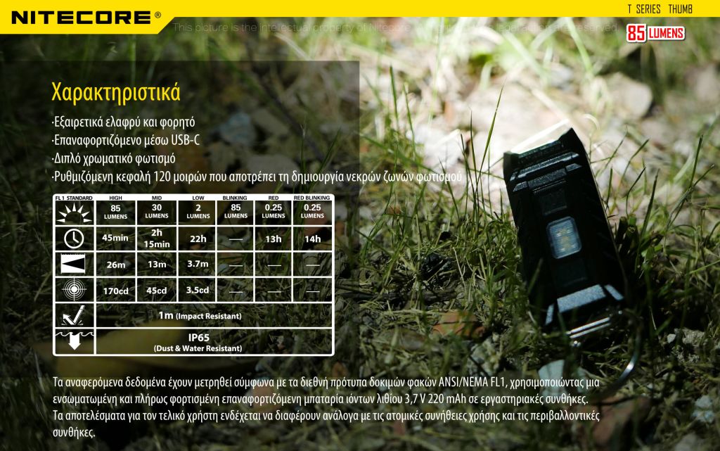 ΦΑΚΟΣ LED NITECORE THUMB USB-C s/n, rechargable, 85lumens