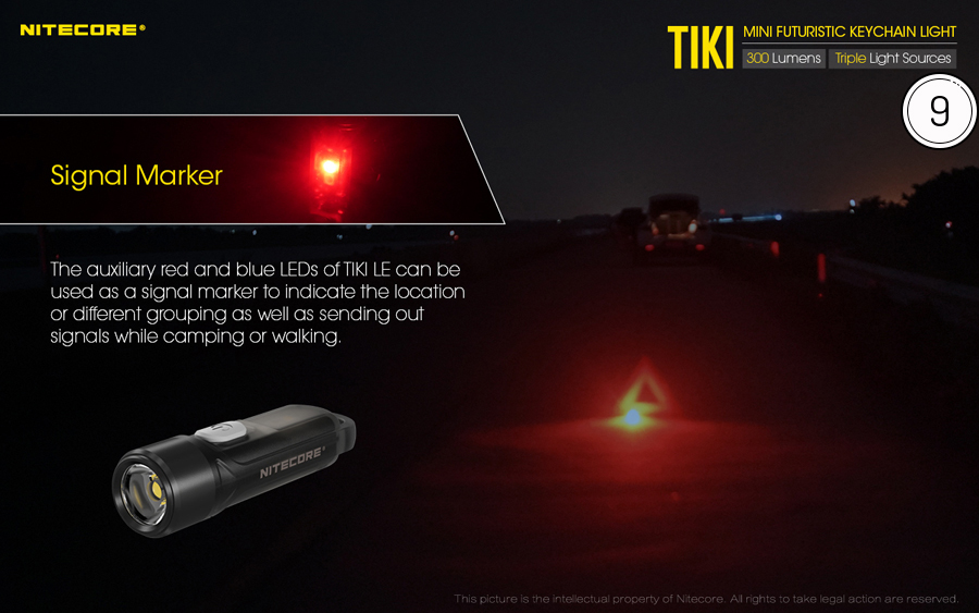 Μικρός φακός για τα κλειδιά νέας σχεδίασης, εξαιρετικά ελαφρύς 10g, επαναφορτιζόμενος από USB, πολύ ισχυρός 300 Lumens!! με τρεις (3) διαφορετικές πηγές φωτισμού.Κατασκευασμένα από ανθεκτικά πολυκαρβονικά υλικά (PC V0) που χρησιμοποιούνται κυρίως στην αεροναυπηγική βιομηχανία και την βιομηχανία ηλεκτρονικών, το TIKI / TIKI LE εξασφαλίζουν άνετο και σταθερό κράτημα και λειτουργούν ως πολύ μικρά και ελαφριά φουτουριστικά γκάτζετ. Το TIKI Έχει περίβλημα στην κεφαλή από ανοξείδωτο ατσάλι ενώ το TIKI LE έχει περίβλημα στην κεφαλή από κράμα Αλουμινίου. Και τα δύο έχουν εξαιρετική διάχυση της θερμοκρασίας.Πολύ μικρό βάρος μόλις 10g και πολύ μικρό σε διαστάσεις με μήκος: 55mm και διάμετρο κεφαλής 14,7mm. Το TIKI και το TIKI LE ενσωματώνουν ένα κεντρικό LED OSRAM P8 με έναν ολοκληρωμένο ανακλαστήρα που εκπέμπει μία ομοιόμορφη και απαλή δέσμη.Το CRi είναι μία ποσοτική μέτρηση της ικανότητας μία πηγής φωτισμού να αποκαλύπτει τα χρώματα διαφόρων αντικειμένων με πιστότητα σε σύγκριση με το φυσικό ημερήσιο φως. Το εύρος των τιμών του CRi κυμαίνεται από 0-100. Όσο μεγαλύτερες γίνονται οι τιμές, τόσο πιο ικανό είναι το φως να αποκαλύψει το πραγματικό χρώμα των αντικειμένων Το TIKI είναι εφοδιασμένο με ένα βοηθητικό LED υψηλού CRI (Μεγαλύτερου ή ίσου με 90), που παράγει μία θερμή και απαλή δέσμη που μοιάζει το φυσικό φως του ήλιου και δίνει μία ξεκάθαρη εικόνα ενώ παράλληλα μειώνει την ένταση των ματιών.Το βοηθητικό υπεριώδες LED (500mW, 365nm) του TIKI έχει την δυνατότητα να διεγείρει τον φθορισμό σε αντικείμενα και μπορεί να χρησιμοποιηθεί ως ανιχνευτής πλαστών χαρτονομισμάτων και πλαστών εγγράφων , ως ελεγκτής φθοριζόντων χημικών, ως ενεργοποιητής φωσφοριζόντων υλικών ή ως φως που ελκύει έντομα Το βοηθητικό LED κόκκινου φωτισμού του TIKI LE μπορεί να χρησιμοποιηθεί ως προειδοποιητικός φωτισμός κατάδειξης θέσης ή ως φωτισμός αναγνώρισης ομάδας ή ως φωτισμός για αποστολή σημάτων κατά την διάρκεια περιπάτων ή κατασκήνωσης.Η λειτουργία Προειδοποιητικού Αναβοσβήματος με εναλλαγή του Κόκκινου και του Μπλε φωτισμού που διαθέτει ο TIKI LE μπορεί να χρησιμοποιηθεί για την εκπομπή προειδοποιητικού σήματος σε οχήματα που πλησιάζουν ή σε πεζούς για την αποφυγή πιθανών κινδύνων.Πατήστε και κρατήστε πατημένο τον διακόπτη και θα μεταβείτε άμεσα στο πιο ισχυρό επίπεδο φωτισμού του κύριου LED Όταν ο φακός είναι απενεργοποιημένος, με διπλό πάτημα του διακόπτη το κεντρικό LED ανάβει στον πιο χαμηλό φωτισμό. Όταν ο φακός είναι ενεργοποιημένος, παρατεταμένο πάτημα του διακόπτη και ο φακός απενεργοποιείται. Όταν ο φακός είναι ενεργοποιημένος, σύντομα πατήματα του διακόπτη αλλάζουν την ένταση φωτισμού με την σειρά "Πολύ Χαμηλό-Χαμηλό-Μεσαίο-Turbo".Για το TIKI: Όταν ένας από τους βοηθητικούς φωτισμούς είναι ενεργοποιημένος, με σύντομο πάτημα του διακόπτη αλλάζουν κυκλικά οι βοηθητικές φωτεινότητες με την ακόλουθη σειρά " Υπεριώδες LED(UV) - Λευκό μόνιμα αναμμένο - Λευκό προειδοποιητικό αναβόσβημα " Για το TIKI LE: Όταν ένας από τους βοηθητικούς φωτισμούς είναι ενεργοποιημένος, με σύντομο πάτημα του διακόπτη αλλάζουν κυκλικά οι βοηθητικές φωτεινότητες με την ακόλουθη σειρά " Κόκκινο - Μπλε - Κόκκινο/Μπλε προειδοποιητικό αναβόσβημα " Ο χειρισμός είναι εύκολος και όλες οι λειτουργίες επιτυγχάνονται με την χρήση ενός κεντρικού διακόπτη.Η ενσωματωμένη επαναφορτιζόμενη μπαταρία ιόντων λιθίου με τα 130mAh έχει συγκρίσιμη απόδοση με μία Αλκ