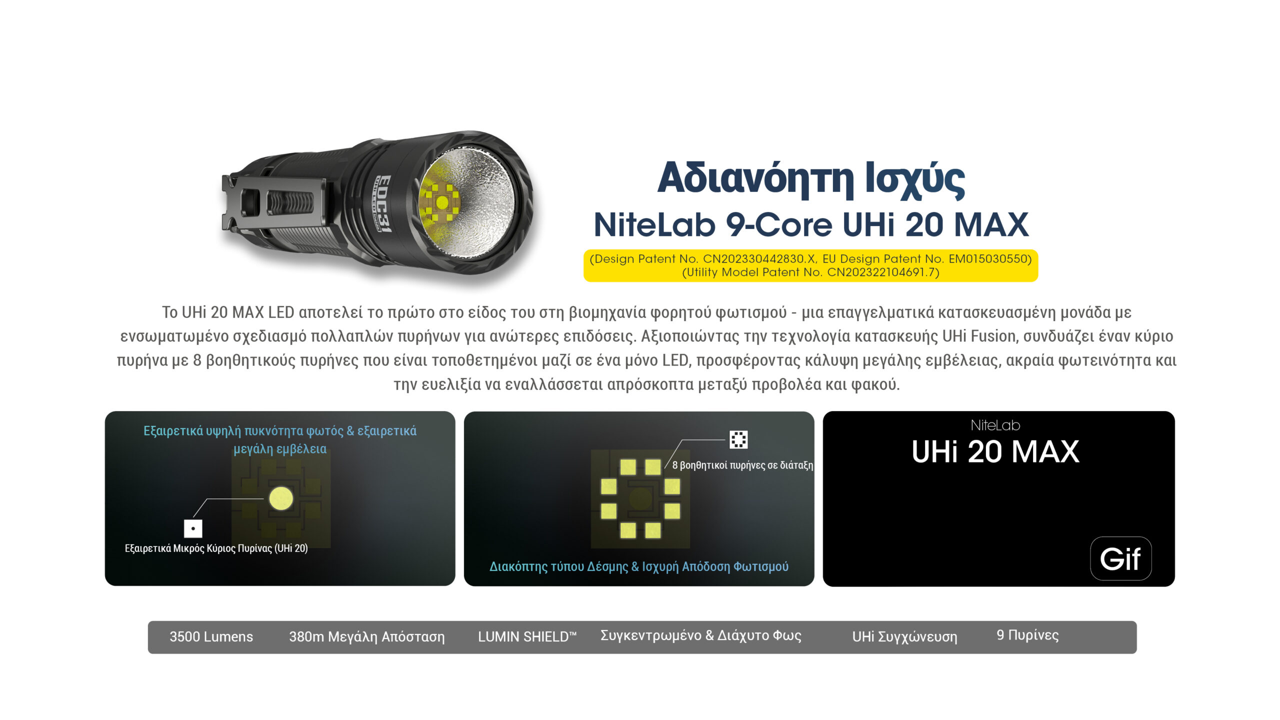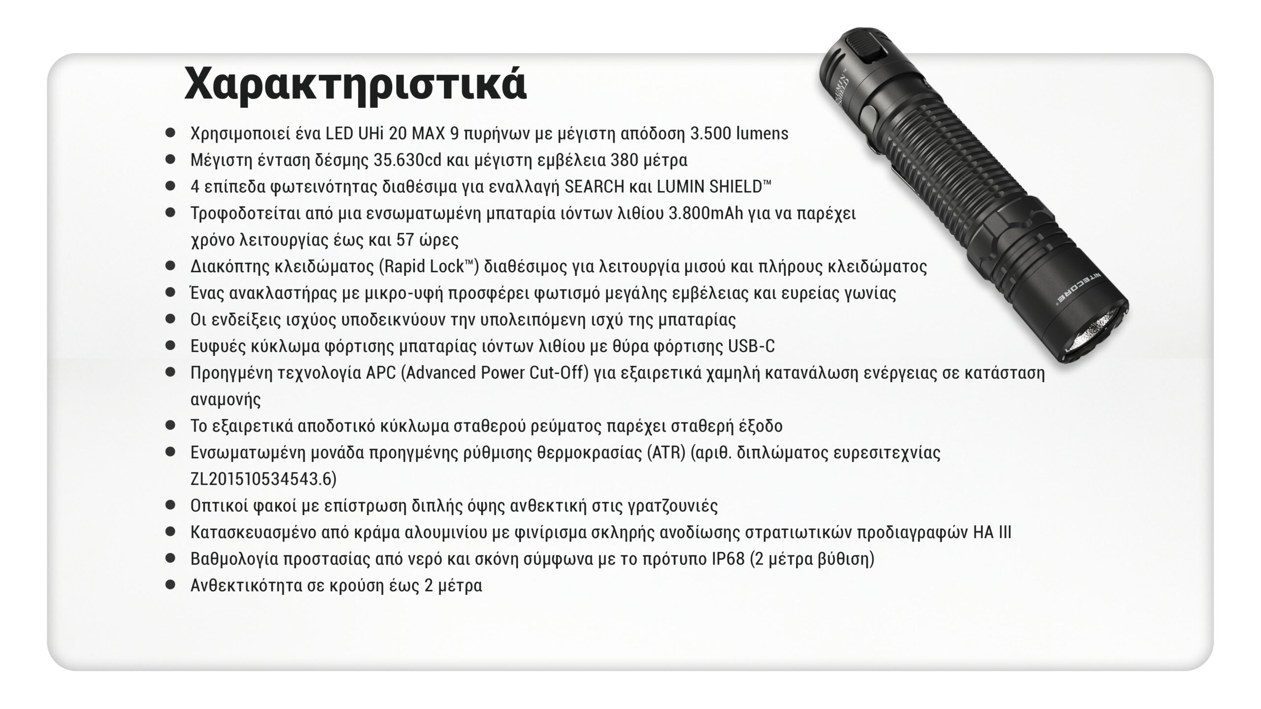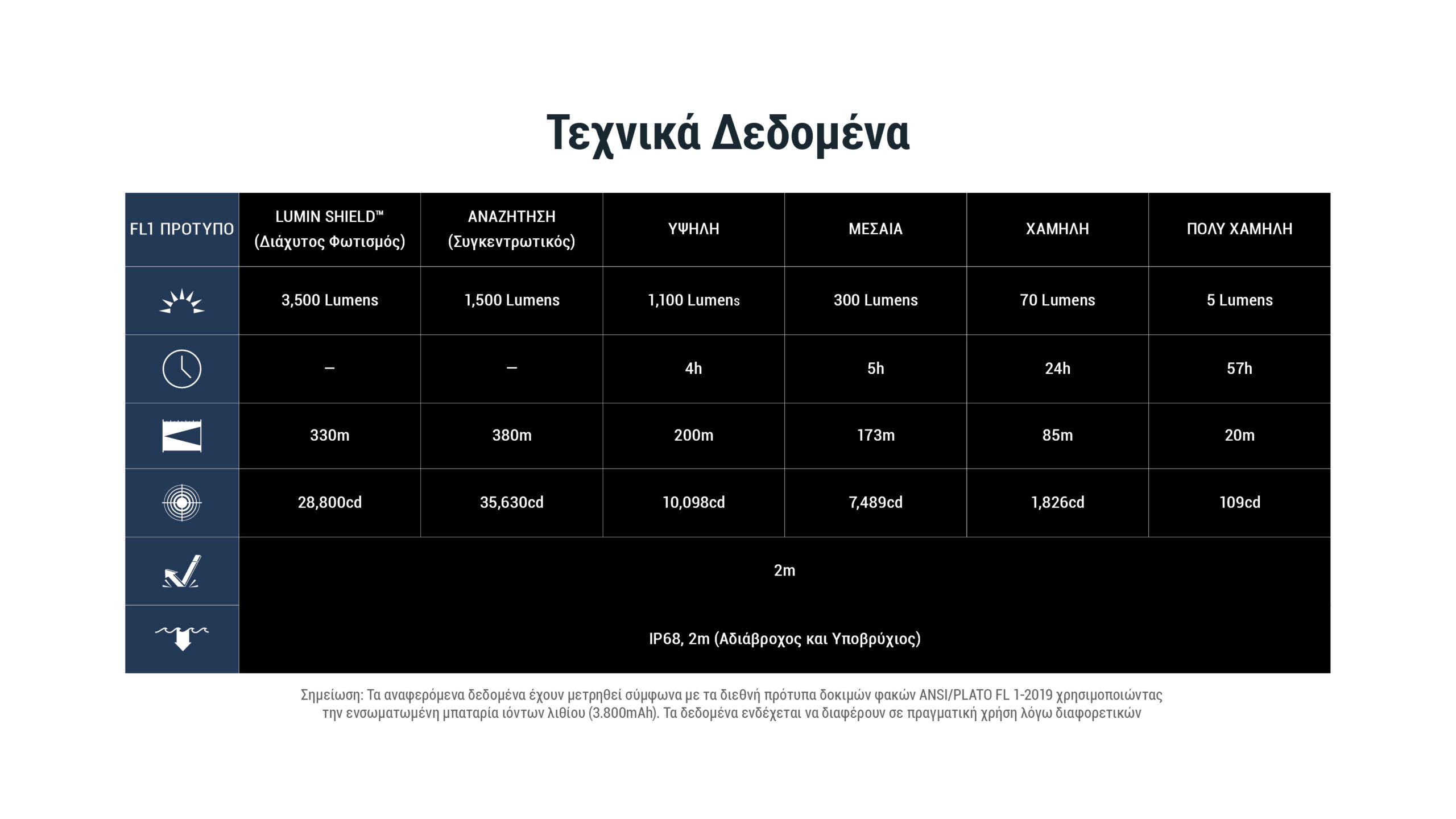 - Μέγιστη ισχύς δέσμης: 3500 Lumens