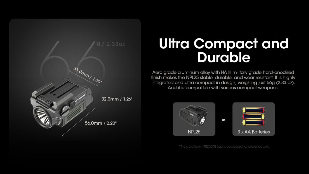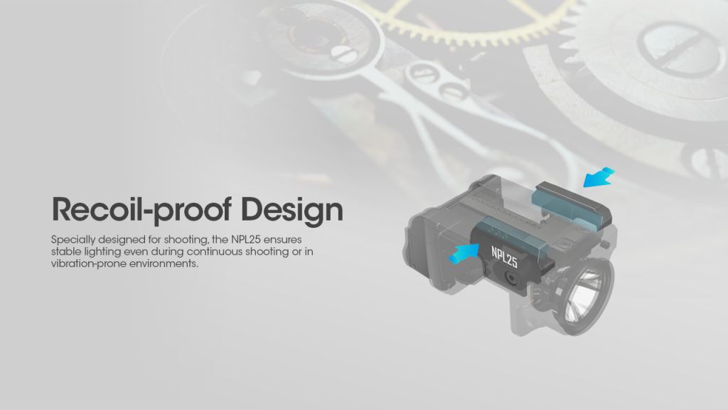 Ειδικά σχεδιασμένος για σκοποβολή, ο φακός NITECORE NPL25 εξασφαλίζει σταθερό φωτισμό ακόμα και κατά τη διάρκεια συνεχών πυροβολισμών ή σε περιβάλλοντα που είναι επιρρεπή σε κραδασμούς.