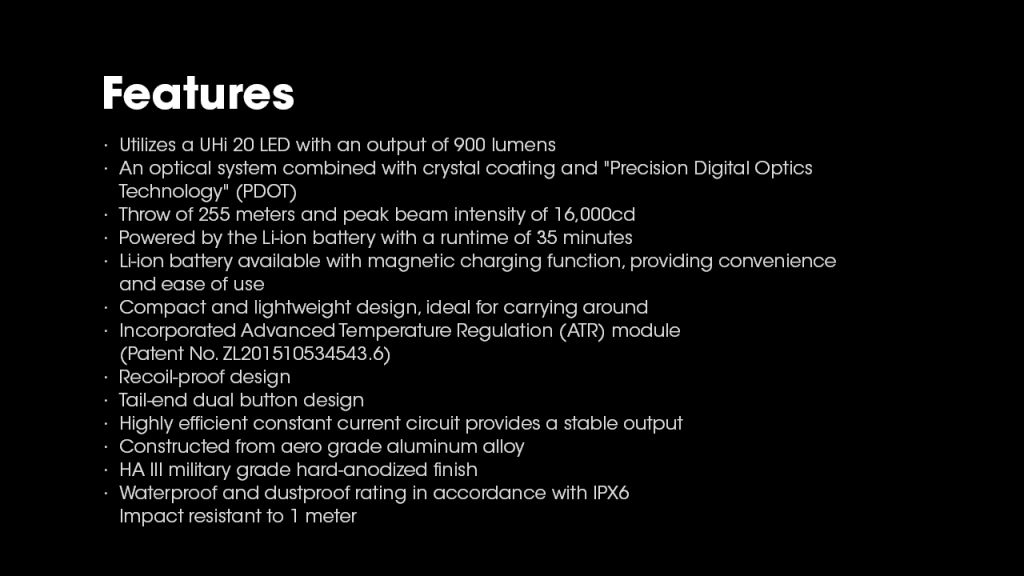 – Χρησιμοποιεί ένα LED UHi 20 με απόδοση 900 lumens