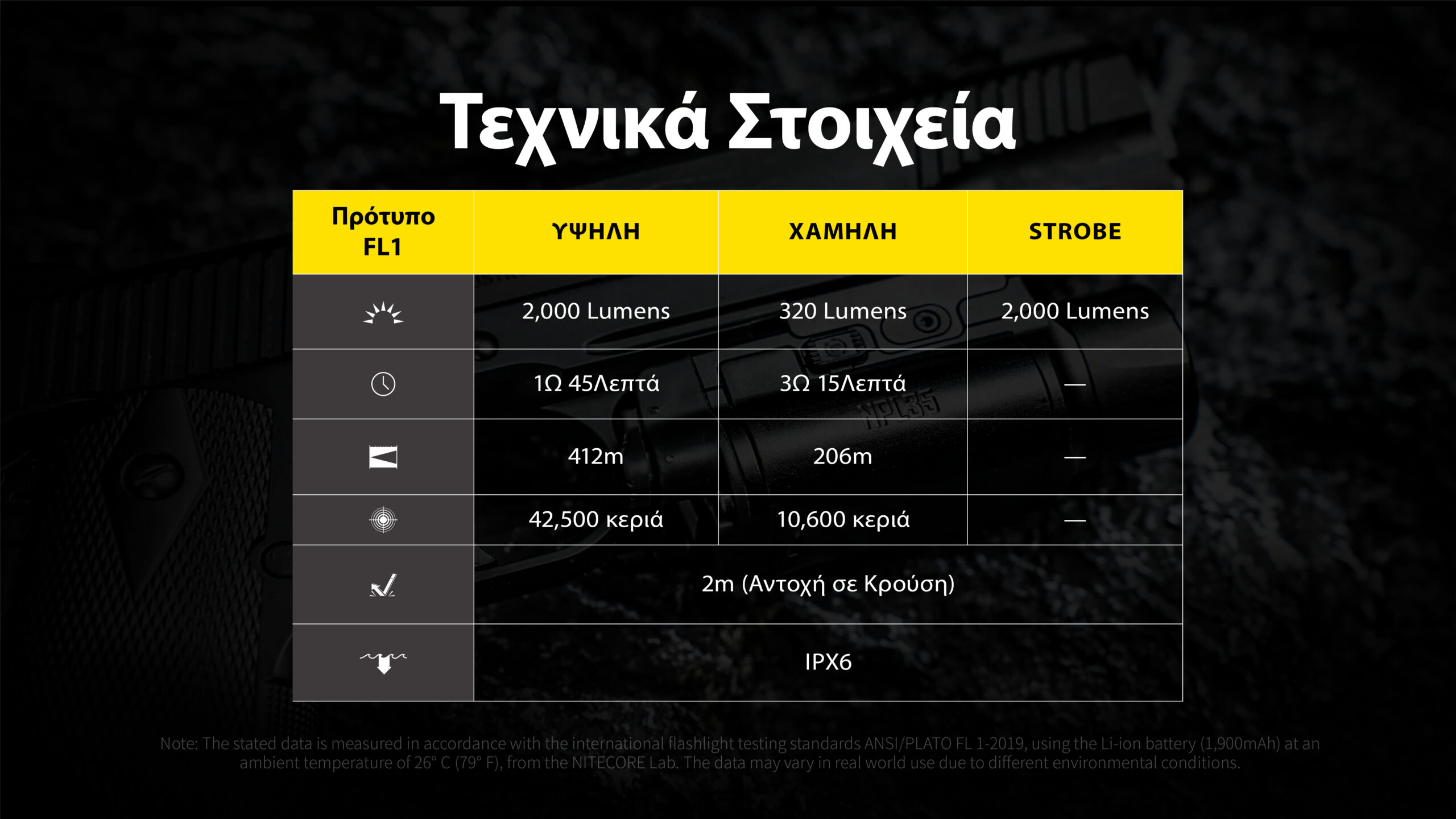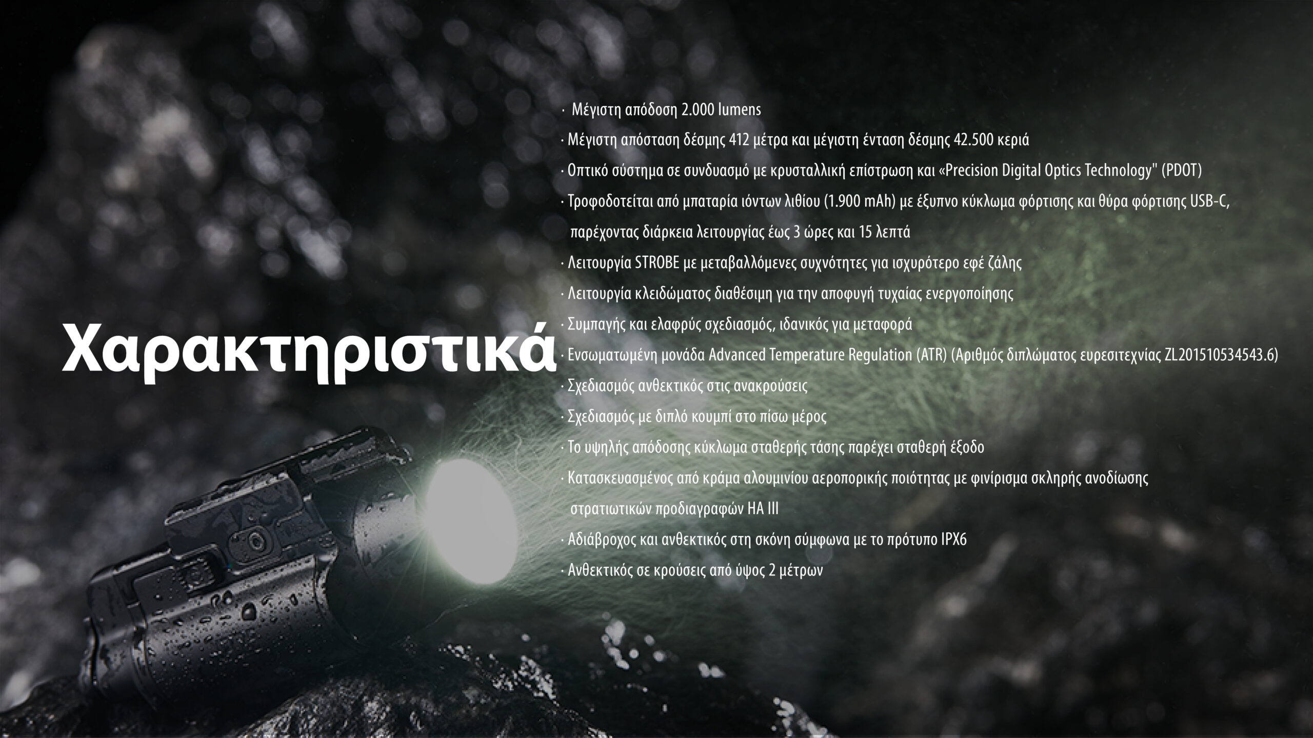 - Μέγιστη ισχύς δέσμης: 2000 Lumens