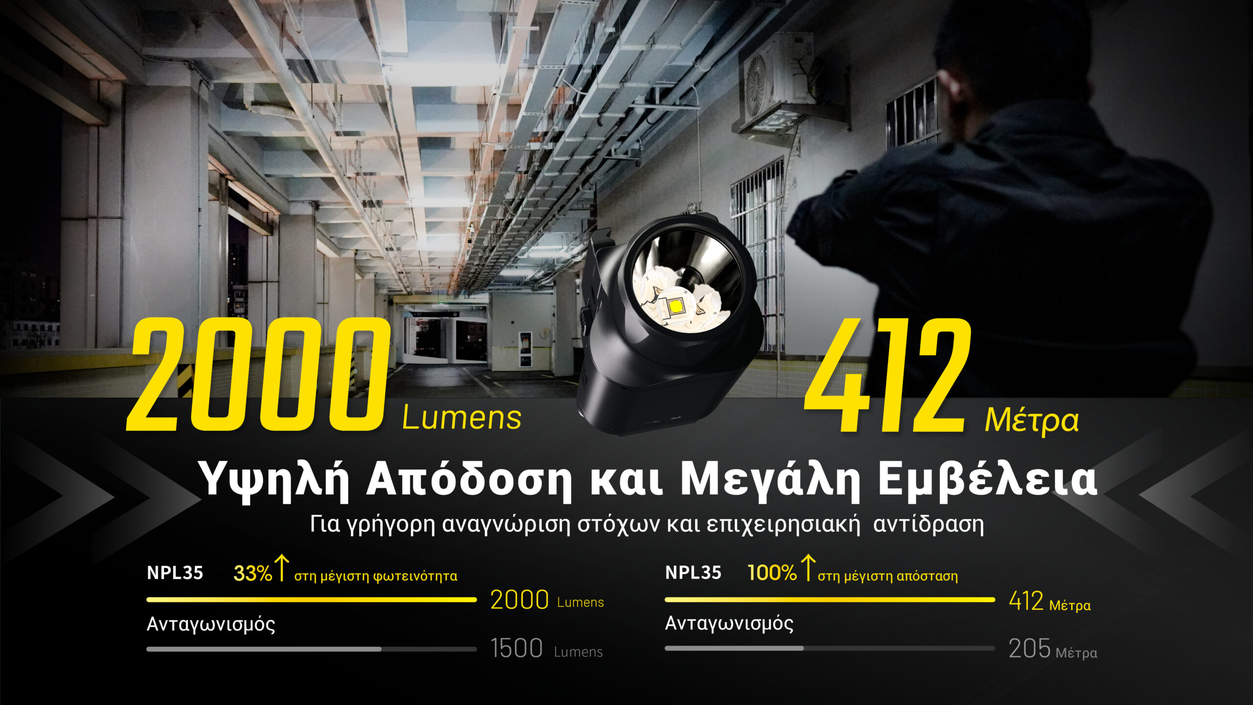 Ο φακός Led NPL35 της Nitecore είναι η ιδανική επιλογή για επαγγελματίες και λάτρεις της περιπέτειας. Με μέγιστη ισχύ δέσμης 2000 lumens, προσφέρει εξαιρετική φωτεινότητα και ορατότητα σε μεγάλες αποστάσεις. Η μέγιστη ένταση δέσμης φτάνει τα 42500 κεριά, επιτρέποντας την παρακολούθηση αντικειμένων σε απόσταση έως 412 μέτρων. Ιδανικός για στρατιωτική χρήση και σώματα ασφαλείας, ο NPL35 διαθέτει ειδική λειτουργία Strobe για επείγουσες καταστάσεις. Η μπαταρία του είναι αφαιρούμενη Li-ion 1900mAh, προσφέροντας μεγάλη διάρκεια λειτουργίας έως 3 ώρες και 15 λεπτά.