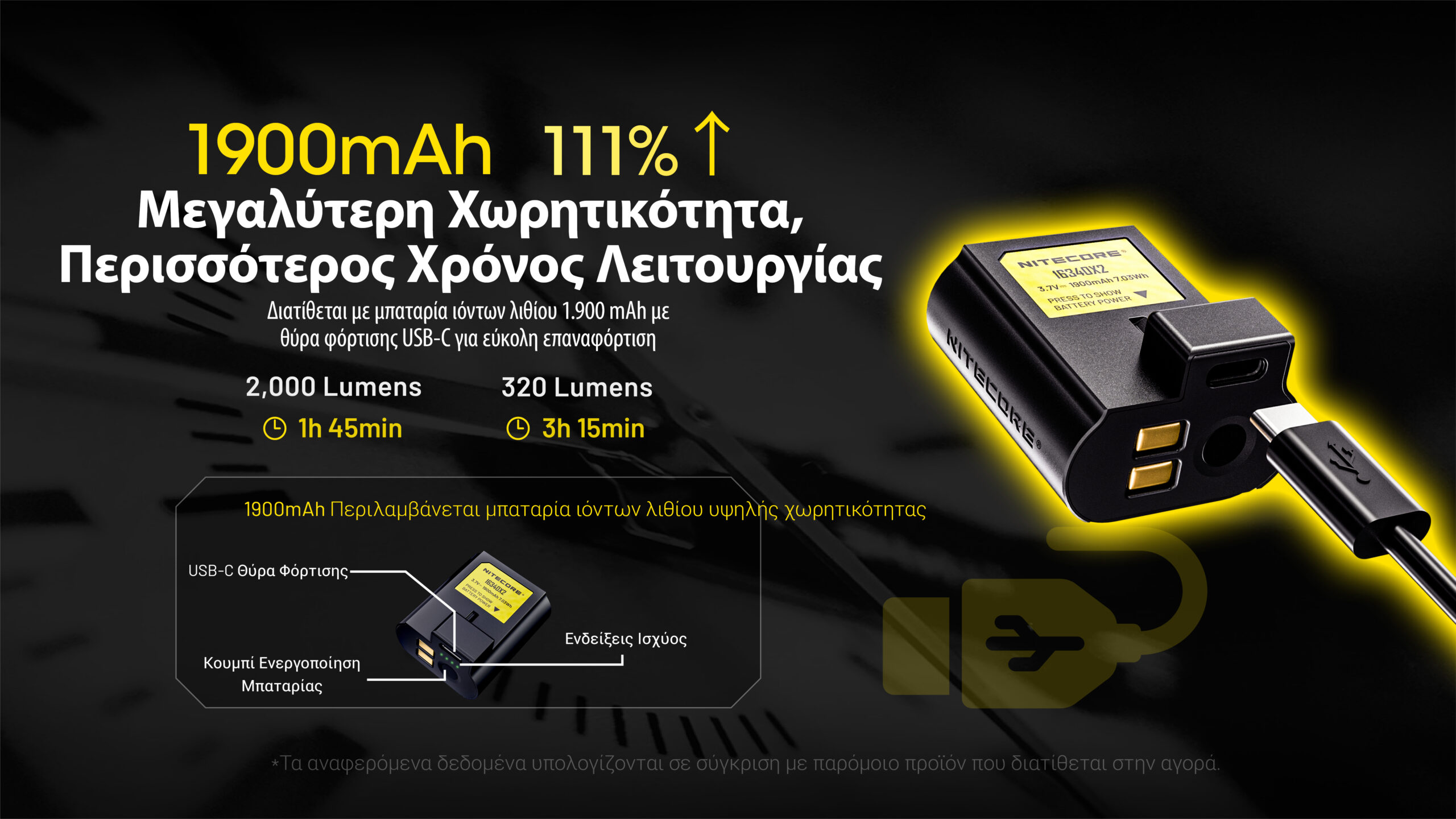 Φακός Led NPL35 Nitecore, 2000 lumens, ιδανικός για στρατιωτική χρήση.