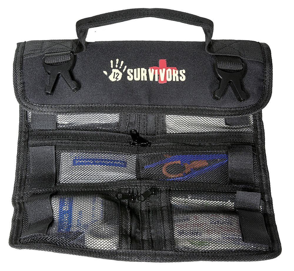 Το έξυπνο σετ Επιβίωσης 12 Survivors™ Mini First Aid Rollup Kit είναι μοναδικό γιατί αποθηκεύεται εύκολα σε ένα σε ένα σακίδιο πλάτης για κάμπινγ ή πεζοπορία ενώ παράλληλα σας καλύπτει σε περιπτώσεις έκτακτης ανάγκης. Μπορεί να σας βοηθήσει να καταπολεμήσετε περιπτώσεις έντονης αιμοραγίας με τα πολλά και χρήσιμα αξεσουάρ που περιέχει. Διαθέτει 7 εσωτερικές τσέπες με φερμουάρ που σας βοηθάνε στην οργάνωση, τον διαχωρισμό με αποτέλεσμα την εύκολη χρήση αυτών. Αυτό το αξιόπιστο κιτ ξεδιπλώνεται και διαθέτει κλεισίματα Velcro και πόρπες με ιμάντες MOLLE και χειρολαβή για εύκολη μεταφορά παντού.