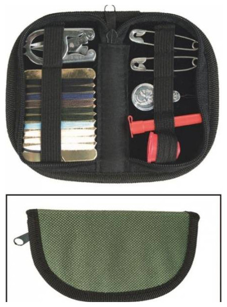 Βρίσκεστε σε ταξίδι ή στο camping και σας σκίστηκε κάποιο ρούχο ή αξεσουάρ? Μην πανικοβάλλεστε! Η Mil-Tec σας προσφέρει την λύση με το υπέροχο σετ ραπτικής που δημιούργησε, και είναι ιδανικό για να το έχετε παντού μαζί σας, καθώς είναι πανάλαφρο και πολύ μικρό ώστε να αποθηκεύεται στην τσάντα ή το σακίδιο σας, τις θήκες του αυτοκινήτου ή ακόμα και στην τσέπη σας! Το Sewing Kit περιλαμβάνει παραμάνες, ένα ψαλίδι, κλωστές σε διαφορετικά χρώματα και βελόνες. Διαθέτει τρεις εσωτερικές τσέπες ώστε να διατηρείτε οργανωμένα τα αξεσουάρ που περιέχει ή που θέλετε να προσθέσετε. Κλείνει με φερμουάρ και είναι ένα εξαιρετικά χρήσιμο προϊόν, σε μια απίστευτη οικονομική τιμή!