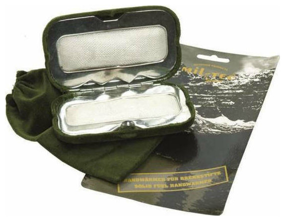 Θερμαντική Συσκευή Χεριών από την κορυφαία εταιρεία Mil-Tec για να ζεσταθούν τα χέρια σας, ακόμη και κάτω από τις πιο αντίξοες συνθήκες. Κατασκευασμένη εξωτερικά από 100% βαμβάκι και εσωτερικά από ατσάλι, ώστε να μπορούν τα στικ καυσίμου να προσφέρουν θερμότητα! Στην συσκευασία περιέχεται και θήκη μεταφοράς από 100% βαμβάκι!