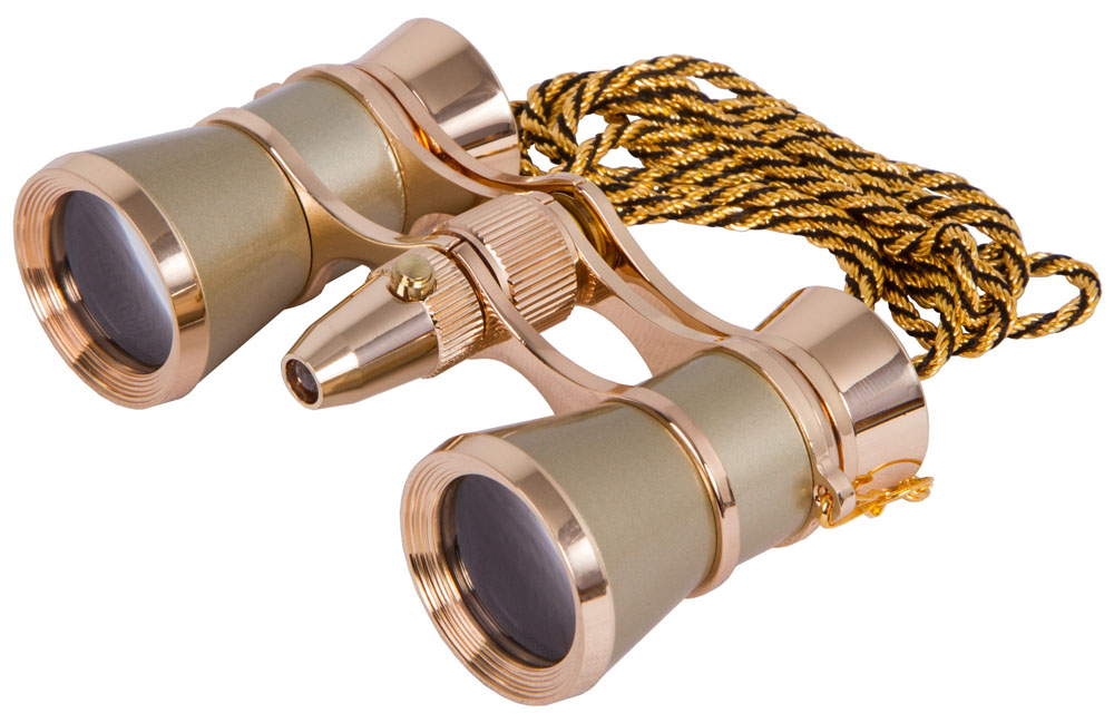 Τα κιάλια Levenhuk Broadway Opera, εκτός από το ότι είναι ένα πρακτικό εργαλείο όταν θέλετε να δείτε τι γίνεται στη σκηνή με τις πιο ξεκάθαρες λεπτομέρειες, είναι και ένα πολύ κομψό αξεσουάρ. Με τα κομψά κιάλια όπερας η σκηνή θα σας αποκαλυφθεί υπό μια εντελώς νέα γωνία. Το μοντέλο Broadway 325F έρχεται σε χρυσό χρώμα, έχει λακαρισμένη επιφάνεια και χρυσή άκρη. Αν και είναι κατασκευασμένα από μέταλλο, τα κιάλια είναι ελαφριά (περίπου 198 γραμμάρια). Είναι τόσο συμπαγή ώστε να μπορείτε να τα μεταφέρετε στο μικρότερο πορτοφόλι. Τα κιάλια έχουν κεντρική εστίαση, η οποία είναι βολική για γρήγορη ρύθμιση ευκρίνειας. Επιπλέον, το μοντέλο είναι εξοπλισμένο με φως LED, το οποίο θα σας βοηθήσει, για παράδειγμα, να βρείτε το κάθισμά σας ακόμη και σε απόλυτο σκοτάδι. Το ενεργειακά αποδοτικό φως LED τροφοδοτείται από δύο μπαταρίες πλήκτρων LR-41 (που περιλαμβάνονται στο κιτ), οι οποίες παρέχουν μεγάλη διάρκεια ζωής και σπανίως πρέπει να αντικατασταθούν. Μια αφαιρούμενη αλυσίδα συνδέεται με τα κιάλια, έτσι ώστε να μην τα αφήνετε κάπου τυχαία.