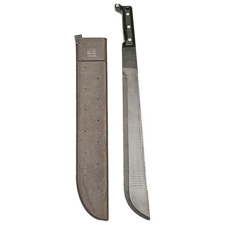 Ματσέτα με την υπογραφή της κορυφαίας εταιρείας Mil-Tec κατάλληλη για κάθε περίσταση! Το συγκεκριμένο προϊόν αποτελεί μοναδικό gadget για τις εξορμήσεις στην φύση και δεν θα σας απογοητεύσει! Η λεπίδα της ματσέτας που είναι εξοπλισμένη με οδόντωση στο άνω μέρος είναι κατασκευασμένη από κράμα ανθρακούχου ατσαλιού, ενώ η λαβή της από ABS πλαστικό χάρη στο οποίο είναι πολύ ανθεκτική και έχει μεγάλη αντοχή. H συσκευασία περιλαμβάνει μια θήκη κατασκευασμένη από 100% πολυαιθυλένιο.