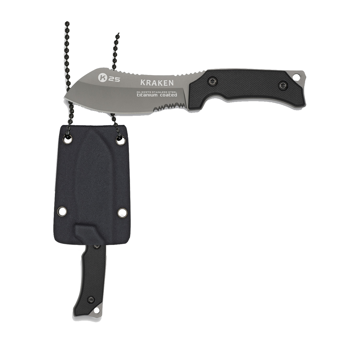 Μαχαίρι από την Κ25 με κωδικό 32373,έχει μήκος λάμας 7,2 εκατοστά και πάχος 3,3 χιλιοστά.Το υλικό κατασκευής της λάμας είναι ανοξείδωτο ατσάλι με επίστρωση τιτανίου για μεγαλύτερη αντοχή και ποιότητα.Έχει μικρό μέγεθος για να μπορείτε να το κουβαλάτε παντού μαζί σας και είναι ελαφρύ σε βάρος.Ιδανικό αξεσουάρ για να σας συντροφεύει στις υπαίθριες δραστηριότητες σας και όχι μόνο αφού μπορείτε να το έχετε παντού μαζί σας!