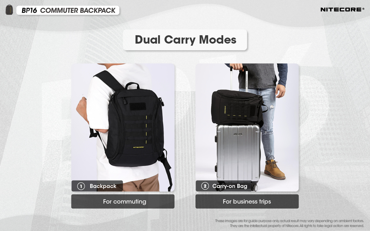 - Δυνατότητα μεταφοράς με δύο τρόπους: Ως σακίδιο πλάτης και ως Χειραποσκευή (Τσάντα)