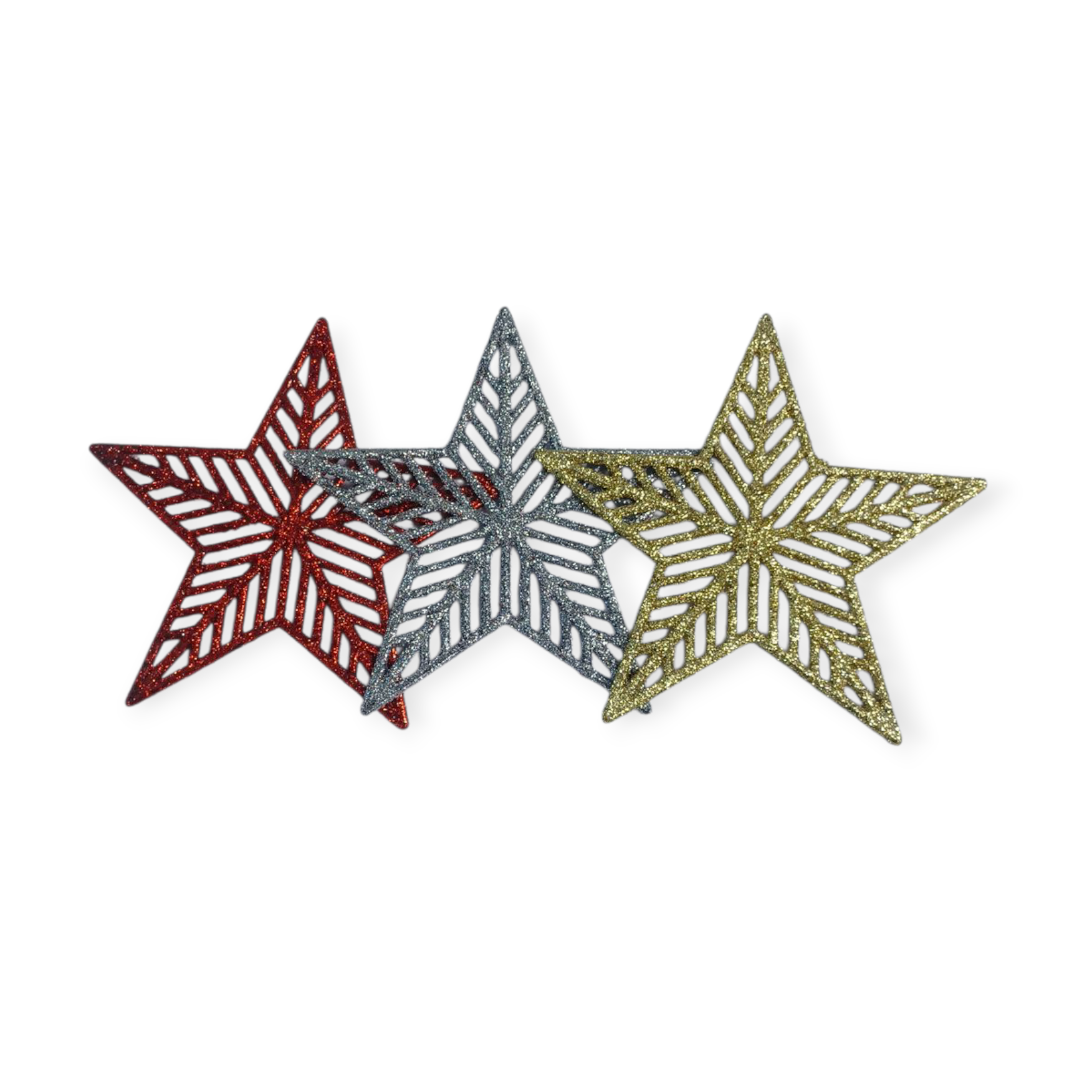 Σετ Χριστουγεννιάτικων στολιδιών 10cm, 3τεμ με λαμπερή χρυσόσκονη.
