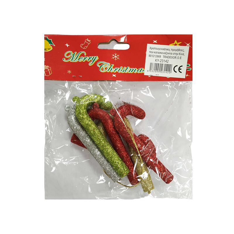 Σετ Χριστουγεννιάτικα στολίδια - Γλειφιτζόυρι μπαστουνάκι - 9cm - 6pcs - 231420