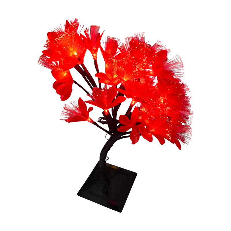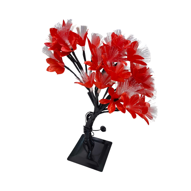 Διακοσμητικό επιτραπέζιο δεντράκι με leds σε σχήμα λουλουδιού, με φωτεινές ίνες, που προσφέρει έναν υπέροχο ατμοσφαιρικό φωτισμό ενώ παράλληλα διακοσμεί οποιονδήποτε χώρο σας. Τα κλαδιά είναι ρυθμιζόμενα και έχει σταθερό κόκκκινο φωτισμό. Ετοιμαστείτε να υποδεχτείτε την περίοδο των γιορτών με με στιλ και να γεμίσετε τις στιγμές σας με λάμψη και θαλπωρή.