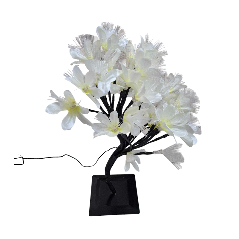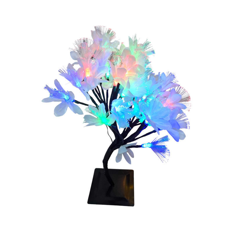 Διακοσμητικό επιτραπέζιο δεντράκι με leds σε σχήμα λουλουδιού, με φωτεινές ίνες, που προσφέρει έναν υπέροχο ατμοσφαιρικό φωτισμό ενώ παράλληλα διακοσμεί οποιονδήποτε χώρο σας.Τα κλαδιά είναι ρυθμιζόμενα και οι λαμπτήρες διαθέτουν πρόγραμμα και αναβοσβήνουν μόνιμα. Ετοιμαστείτε να υποδεχτείτε την περίοδο των γιορτών με με στιλ και να γεμίσετε τις στιγμές σας με λάμψη και θαλπωρή.