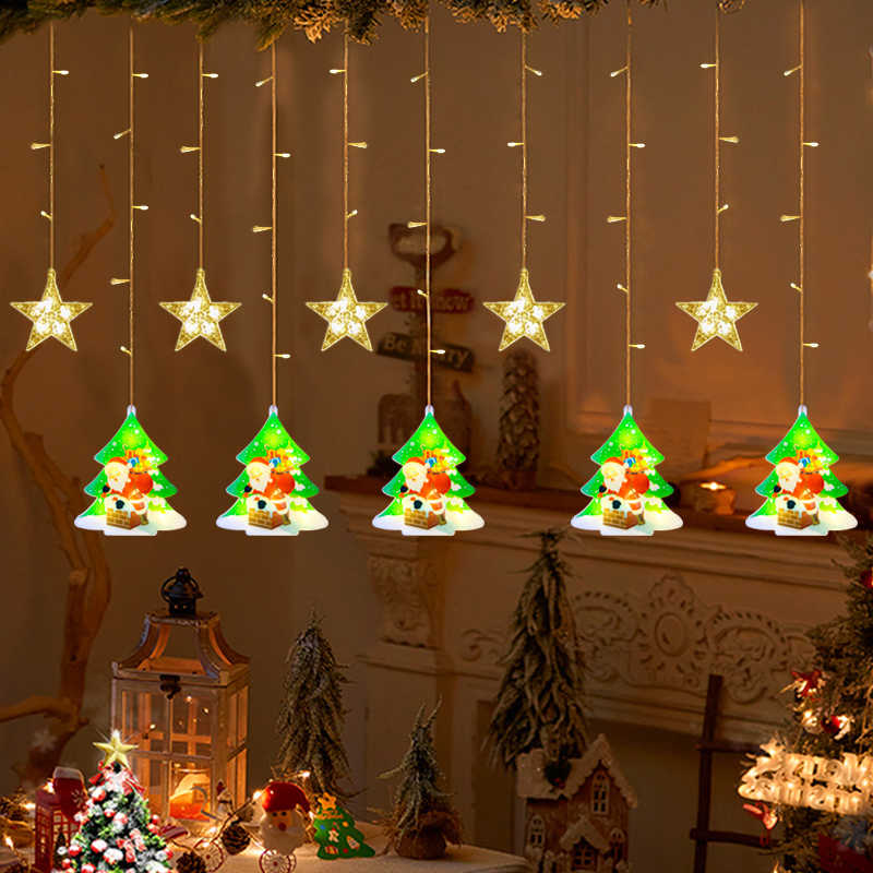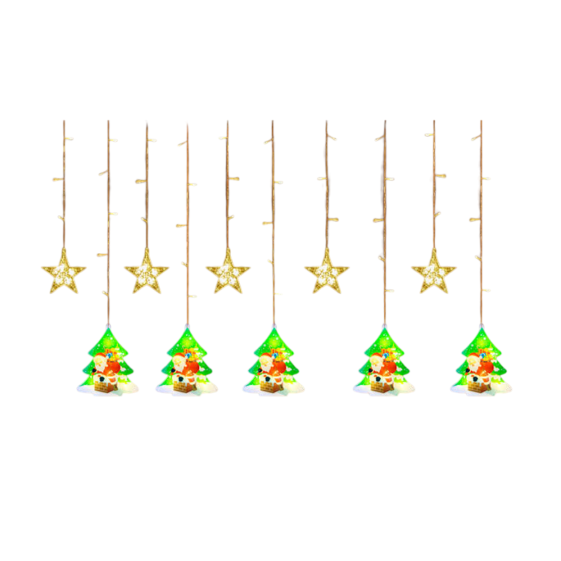 Χριστουγεννιάτικα διακοσμητικά φώτα LED τύπου κουρτίνα με σχέδιο έλατα και αστέρια με χρώμα φωτισμού θερμό λευκό για μαγικά Χριστούγεννα. Δημιουργήστε μοναδική ατμόσφαιρα με τα φωτάκια σε στυλ κουρτίνα. Τα φωτάκια έχουν σχέδιο καλτσάκι και αστέρια και είναι το απαραίτητο αξεσουάρ για τον στολισμό των παραθύρων σας!