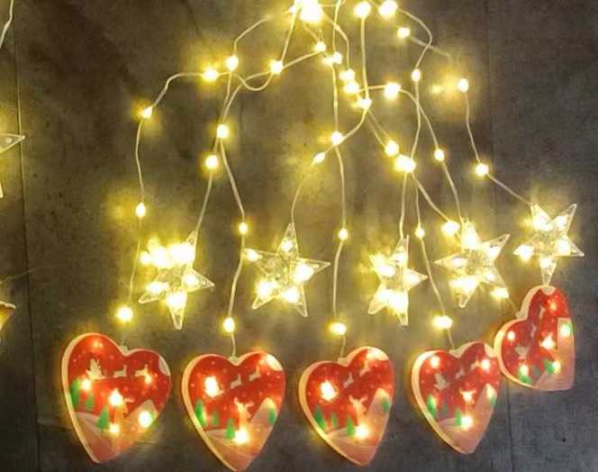 Χριστουγεννιάτικα διακοσμητικά φώτα LED τύπου κουρτίνα και χρώμα θερμό λευκό για μαγικά Χριστούγεννα. Δημιουργήστε μοναδική ατμόσφαιρα με τα φωτάκια σε στυλ κουρτίνα.Τα διακοσμητικά φώτα LED τύπου Κουρτίνα έχουν σχέδιο καρδούλα και αστέρι και είναι το απαραίτητο αξεσουάρ για τον στολισμό των παραθύρων σας.
