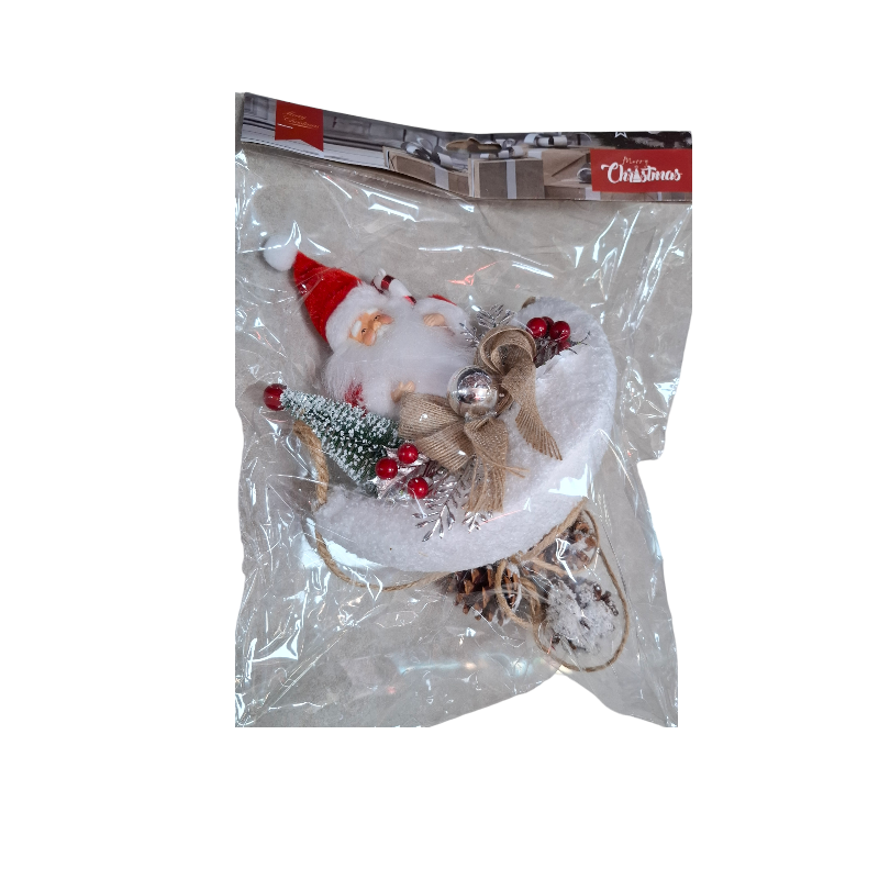 Χριστουγεννιάτικο κρεμαστό διακοσμητικό φεγγάρι με φιγούρα Άγιου Βασίλη, και εντυπωσιακό συνδυασμό στολιδιών με υπέροχες λεπτομέρειες, που μπορεί να ταιριάξει παντού και να προσδώσει ένα χαριτωμένο γιορτινό τόνο σε κάθε χώρο. Κατάλληλο για να δημιουργήσετε μαγευτική ατμόσφαιρα στις γιορτές σας. Ετοιμαστείτε να υποδεχτείτε την περίοδο των γιορτών με στιλ και να γεμίσετε τις στιγμές σας με λάμψη και θαλπωρή.