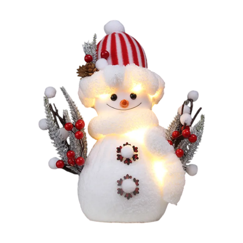 Χριστουγεννιάτικο επιτραπέζιο διακοσμητικό Χιονάνθρωπος με ατμοσφαιρικό φωτισμό LED και υπέροχες σχεδιαστικές λεπτομέρειες. Μπορεί να τοποθετηθεί κάτω από το δέντρο σας ή σε οποιαδήποτε επιφάνεια, προσφέροντας μια χαριτωμένη γιορτινή νότα σε κάθε χώρο. Ετοιμαστείτε να υποδεχτείτε την περίοδο των γιορτών με με στιλ και να γεμίσετε τις στιγμές σας με λάμψη και θαλπωρή.