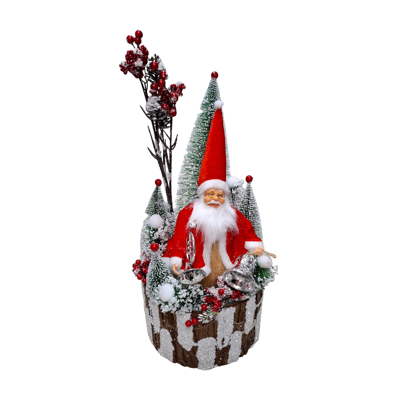 Χριστουγεννιάτικο διακοσμητικό με επιτραπέζια βάση και εντυπωσιακή σύνθεση με φιγούρα Άγιου Βασίλη, ποικιλία στολιδιών και υπέροχες λεπτομέρειες, κατάλληλο για να δημιουργήσετε μαγευτική ατμόσφαιρα στις γιορτές σας. Ετοιμαστείτε να υποδεχτείτε την περίοδο των γιορτών με με στιλ και να γεμίσετε τις στιγμές σας με λάμψη και θαλπωρή.
