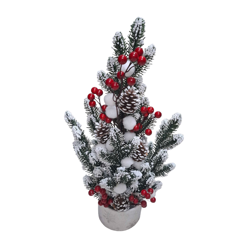 Χριστουγεννιάτικο διακοσμητικό δεντράκι με επιτραπέζια βάση και εντυπωσιακή σύνθεση με στολίδια, κουκουνάρες και υπέροχες ρεαλιστικές λεπτομέρειες που μπορεί να ταιριάξει παντού και να προσδώσει ένα χαριτωμένο γιορτινό τόνο σε κάθε χώρο. Κατάλληλο για να δημιουργήσετε μαγευτική ατμόσφαιρα στις γιορτές σας. Ετοιμαστείτε να υποδεχτείτε την περίοδο των γιορτών με με στιλ και να γεμίσετε τις στιγμές σας με λάμψη και θαλπωρή.
