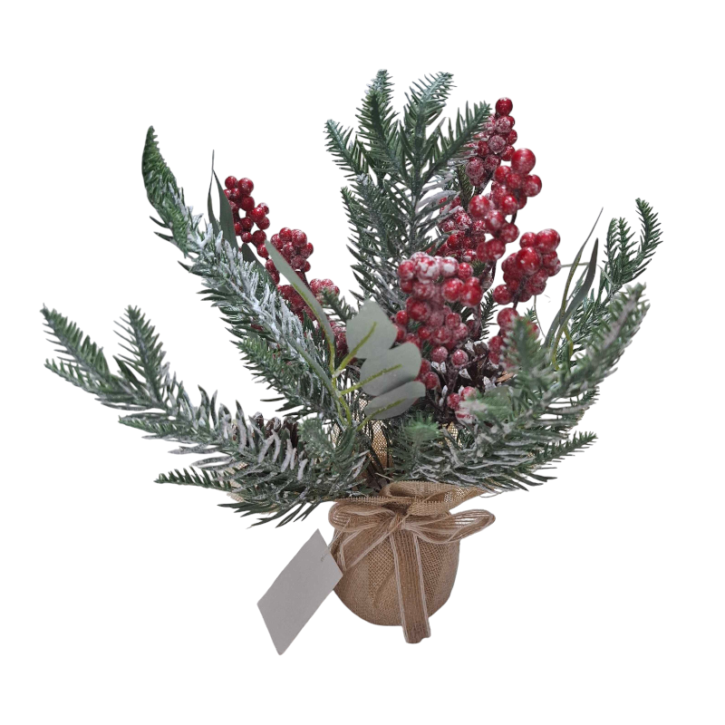 Χριστουγεννιάτικο διακοσμητικό δεντράκι με επιτραπέζια βάση-πουγκί και εντυπωσιακή σύνθεση με στολίδια και υπέροχες ρεαλιστικές λεπτομέρειες που μπορεί να ταιριάξει παντού και να προσδώσει ένα χαριτωμένο γιορτινό τόνο σε κάθε χώρο. Κατάλληλο για να δημιουργήσετε μαγευτική ατμόσφαιρα στις γιορτές σας. Ετοιμαστείτε να υποδεχτείτε την περίοδο των γιορτών με με στιλ και να γεμίσετε τις στιγμές σας με λάμψη και θαλπωρή.