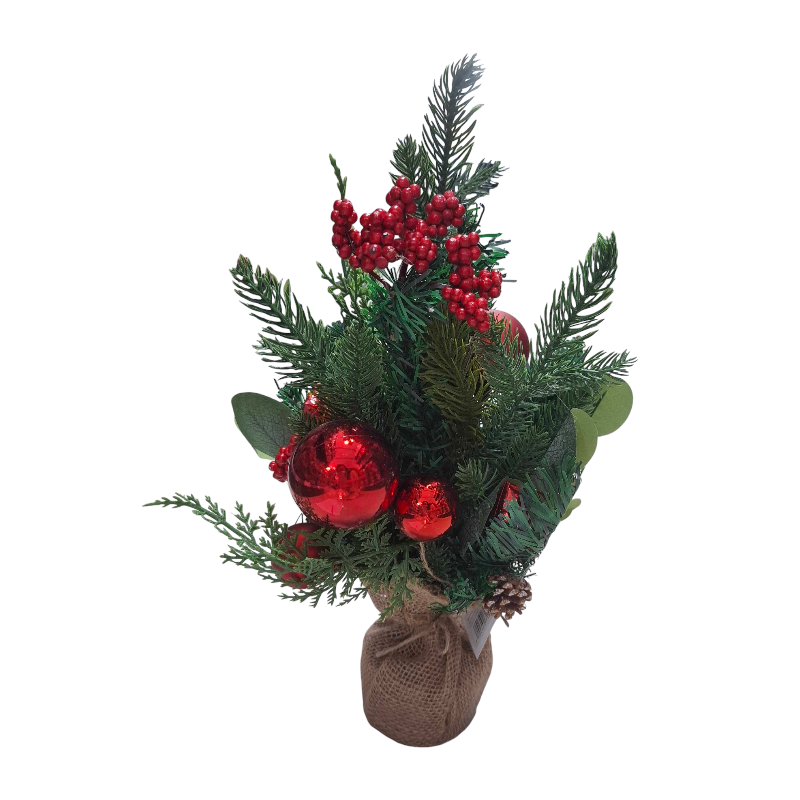 Χριστουγεννιάτικο διακοσμητικό δεντράκι με επιτραπέζια βάση και εντυπωσιακή σύνθεση με στολίδια και υπέροχες ρεαλιστικές λεπτομέρειες που μπορεί να ταιριάξει παντού και να προσδώσει ένα χαριτωμένο γιορτινό τόνο σε κάθε χώρο. Κατάλληλο για να δημιουργήσετε μαγευτική ατμόσφαιρα στις γιορτές σας. Ετοιμαστείτε να υποδεχτείτε την περίοδο των γιορτών με στιλ και να γεμίσετε τις στιγμές σας με λάμψη και θαλπωρή.
