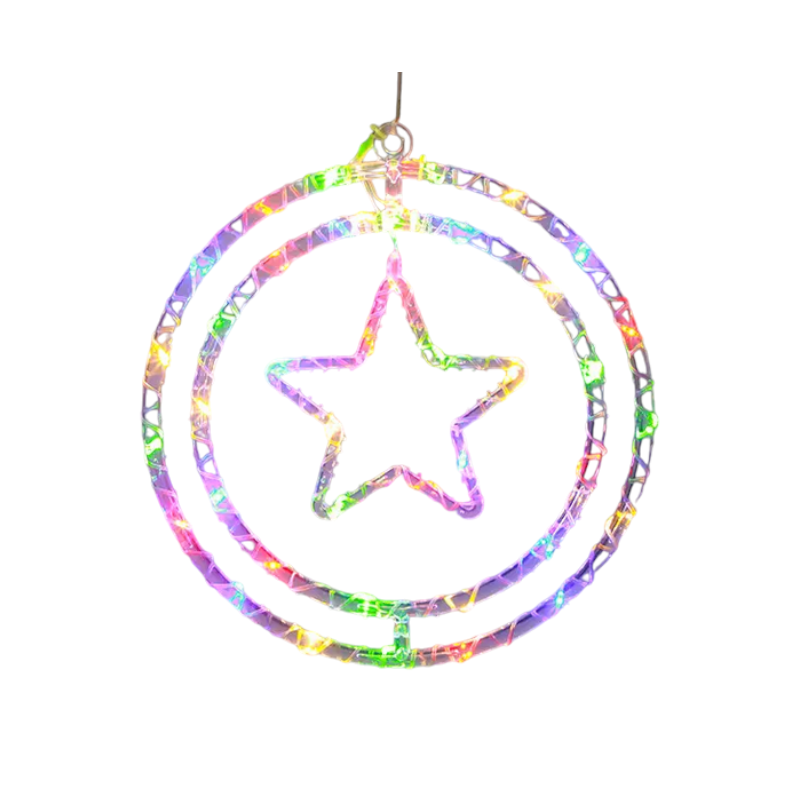 Χριστουγεννιάτικο φωτεινό διακοσμητικό 3D LED με διαφανείς κρίκους και σχέδιο αστέρι. Ένα μοναδικό διακοσμητικό σε πολύχρωμο φωτισμό που αντανακλά στη διαφάνεια και δημιουργεί ένα εντυπωσιακό εφέ, για να δώσετε χρώμα στον στολισμό σας! Ιδανική επιλογή για να εντυπωσιάσετε τους μικρούς μας φίλους!