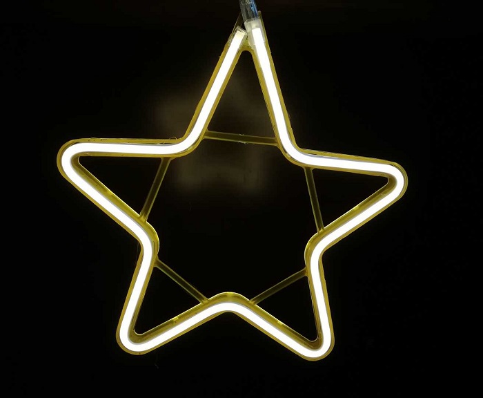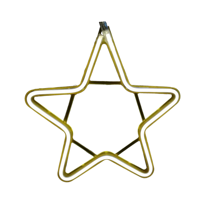 Χριστουγεννιάτικο φωτεινό διακοσμητικό σε σχέδιο Αστέρι με φωτοσωλήνα LED Neon που δημιουργεί ένα εντυπωσιακό εφέ φωτισμού. Είναι κατασκευασμένο από πλαστικό υλικό, ανθεκτικό στις πτώσεις και το πέρασμα του χρόνου. Κατάλληλο να στολίσετε το παράθυρο σας ή τον τόιχο του σπιτιού σας και να δώσετε λάμψη στα φετινά σας Χριστούγεννα!