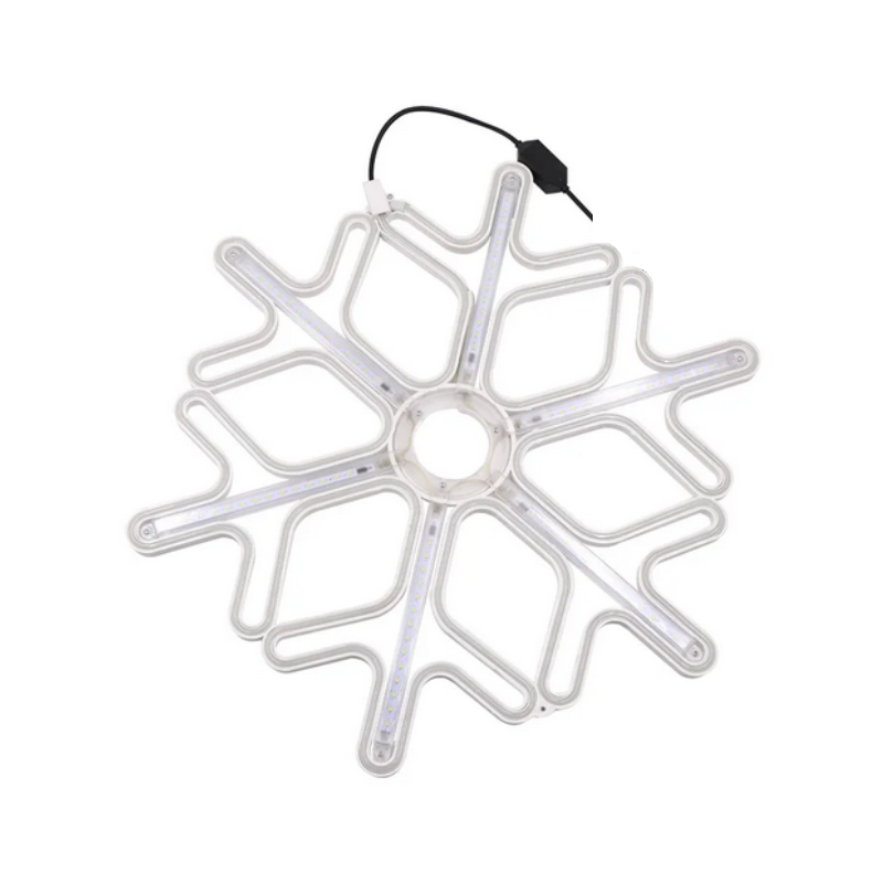Χριστουγεννιάτικο φωτεινό διακοσμητικό σε σχέδιο Χιονονιφάδα με φωτοσωλήνα LED Neon και ενδιάμεσα φωτάκια με γραμμική κίνηση που δημιουργούν ένα εντυπωσιακό εφέ φωτισμού. Είναι κατασκευασμένο από πλαστικό υλικό, ανθεκτικό στις πτώσεις και το πέρασμα του χρόνου. Κατάλληλο να στολίσετε το παράθυρο σας ή τον τόιχο του σπιτιού σας και να δώσετε λάμψη στα φετινά σας Χριστούγεννα!