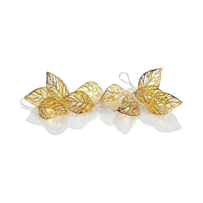 Χριστουγεννιάτικα φωτάκια σε σχήμα φύλλου, συνολικού μήκους 3 μέτρων. Διαθέτει 20 λαμπτήρες σε θερμό λευκό χρώμα και λειτουργεί με 3 μπαταρίες ΑΑ (δε περιλαμβάνονται) και μπορείτε να τα τοποθετήσετε παντού χωρίς τη χρήση ρεύματος.Δημιουργήστε χριστουγεννιάτικη ατμόσφαιρα με τα χριστουγεννιάτικα φωτάκια σε χρώμα θερμό λευκό, απαραίτητο αξεσουάρ για φωτεινές γιορτές!